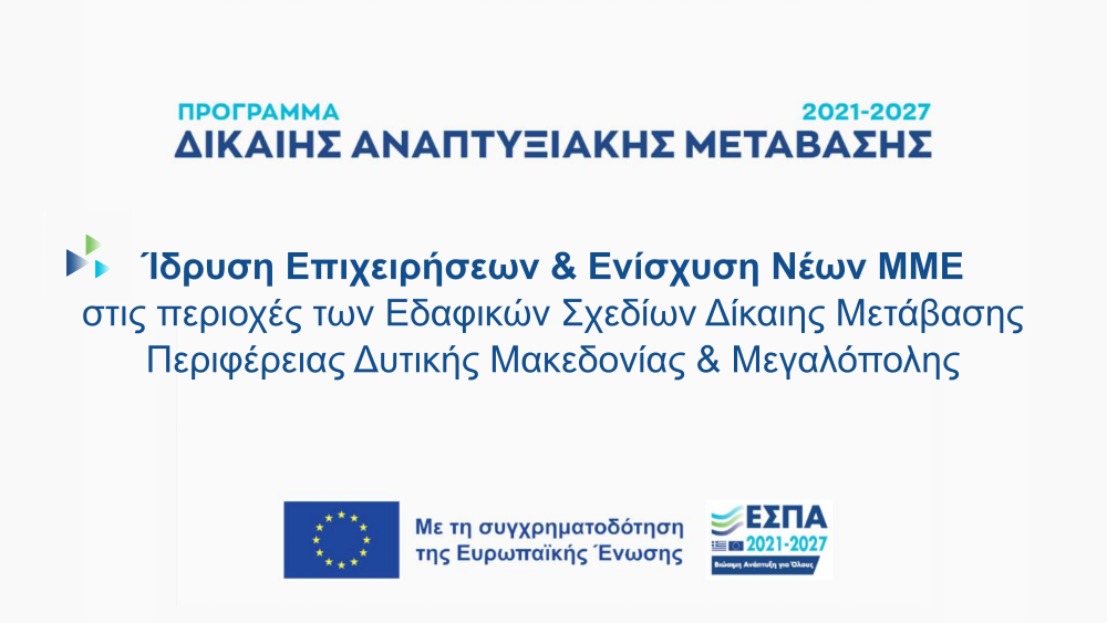 Ίδρυση Επιχειρήσεων & Ενίσχυση Νέων ΜΜΕ στις περιοχές των Εδαφικών Σχεδίων Δίκαιης Μετάβασης Περιφέρειας Δυτικής Μακεδονίας & Μεγαλόπολης